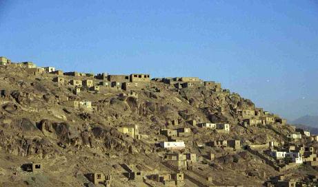Houses built from mud brick line the hills surrounding Kabul. These dwellings offer no heat or running water. It is amazing to find that rent in the 'nice' neighborhoods of Kabul, such as Wazir Akbar Khan, are comparable to New York.